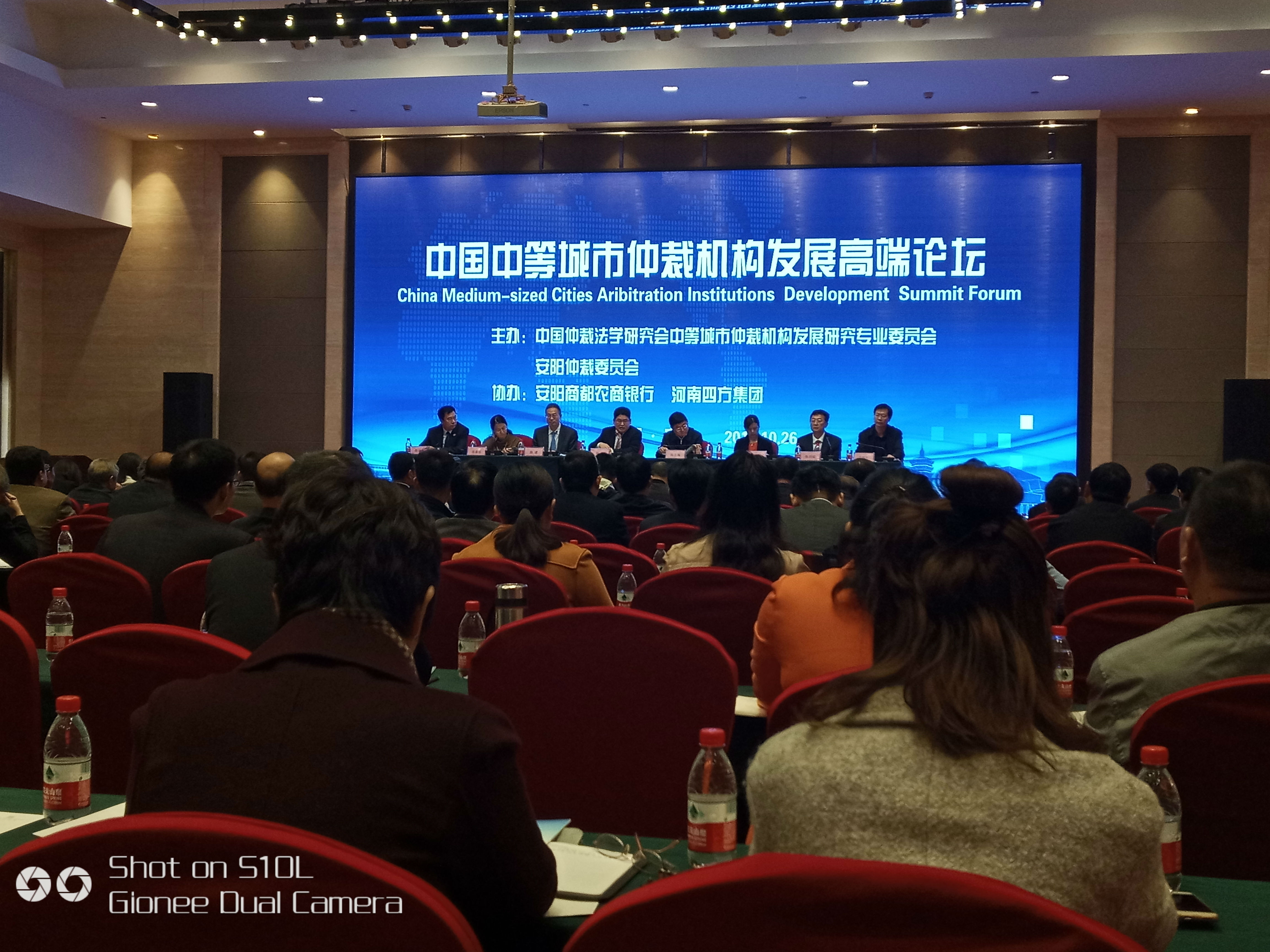 10月26日,中国中等城市仲裁机构发展研究专业委员会揭牌仪式暨高端论坛在安阳市举行。中国国际贸易促进委员会、中国仲裁法学研究会、部分高等院校、律师事务所、仲裁机构等百余代表参加了论坛。本会黄蓉副秘书长参加了此次会议。